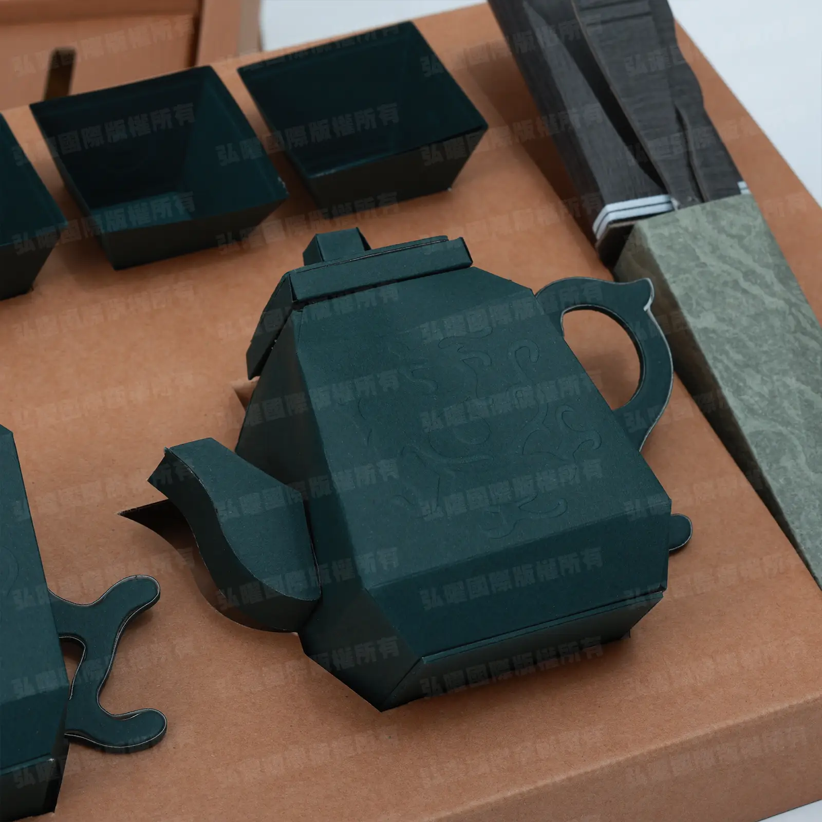 商品名稱:「紙紮茶具組(墨綠)」款式