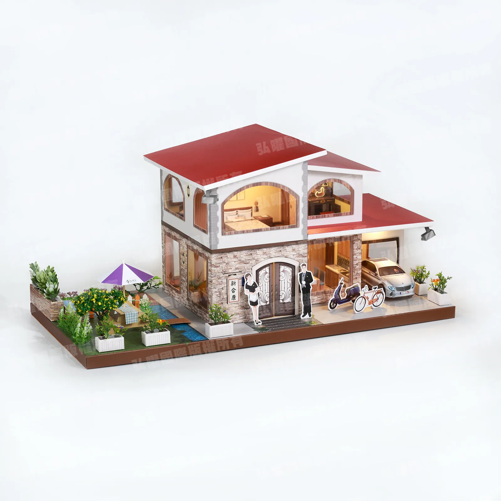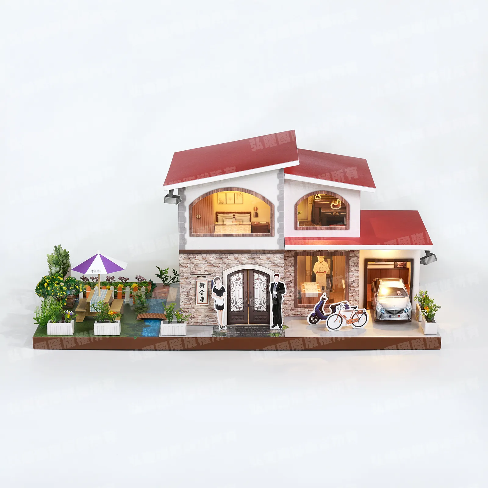 商品名稱:「紙紮新合康農場別墅(紅頂紫傘)」款式